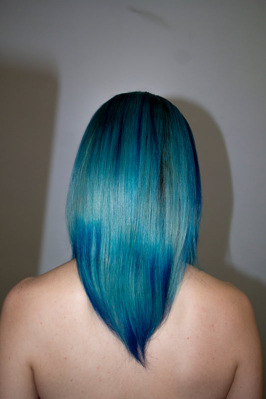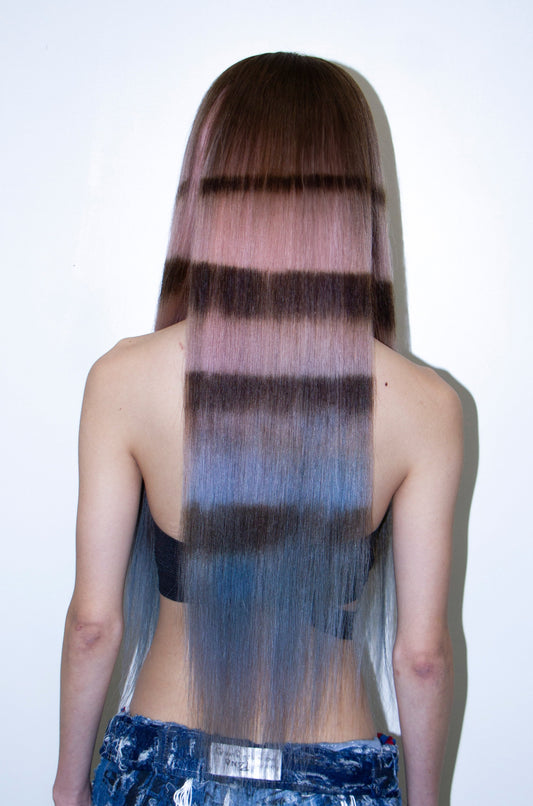 FULL LACE PINK BLUE OMBRÉ STRIPED WITH V BANG 24"