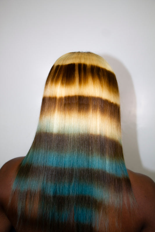 FULL LACE PINK BLUE OMBRÉ WITH STRIPE DESIGN 30"